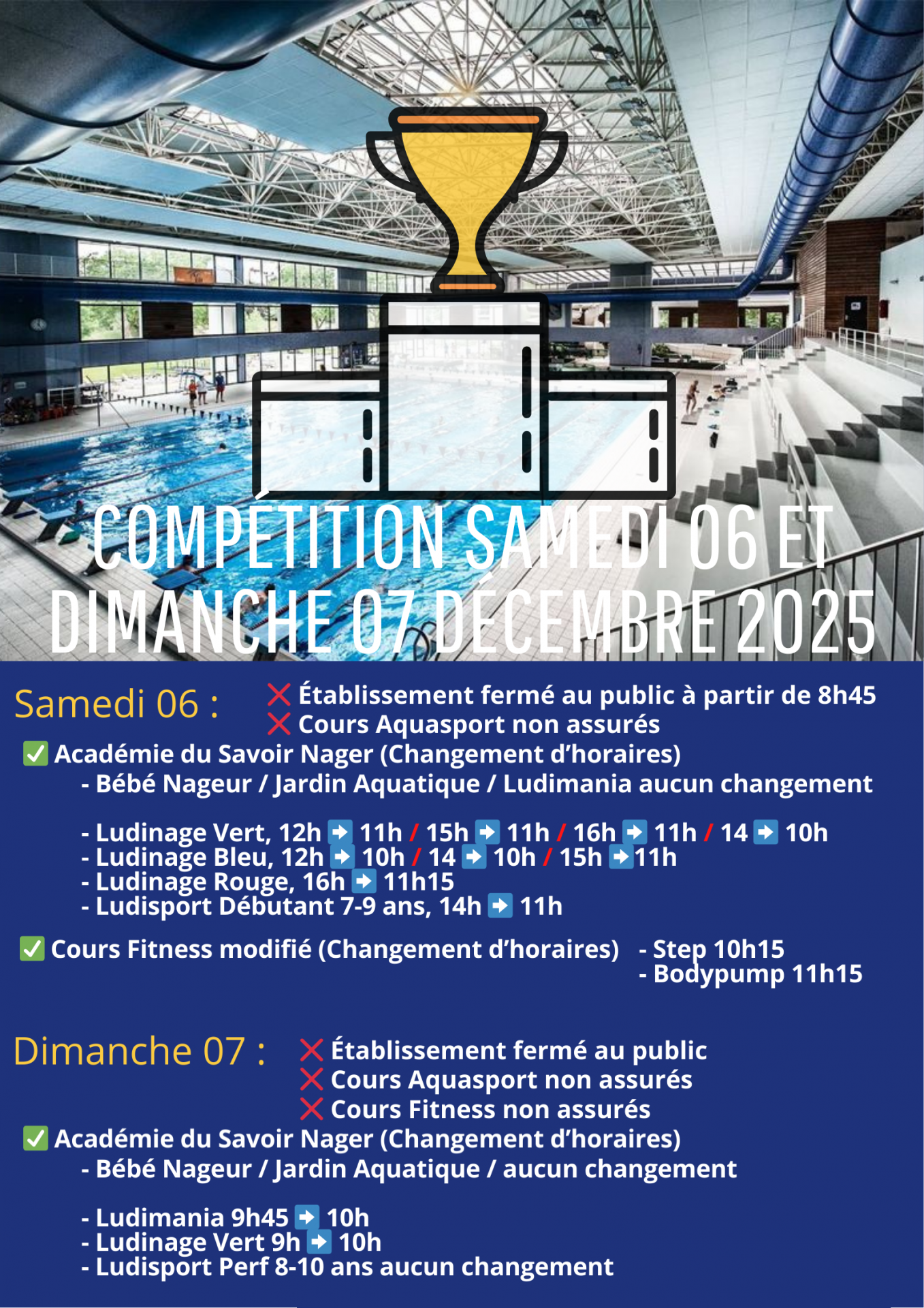 Compétition : Samedi 06 et Dimanche 07 Décembre 2025 [Etablissement fermé]